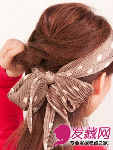 step6:最后将发带打一个蝴蝶结。
