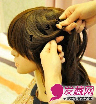 step3:把发束1放到第3股的上方,发束2最下。