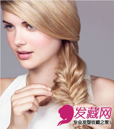 此款造型与其他普通款蜈蚣辫不同,它是一款中间膨胀,下边缩小的蜈蚣辫,所以在编至发尾固定好之后,要用手指将中间位置的发丝挑松,做出膨胀感。