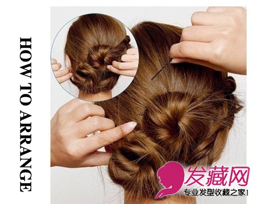 step7:在发髻的左下方扭转成花苞头并用发夹固定。这款发髻就完成啦。