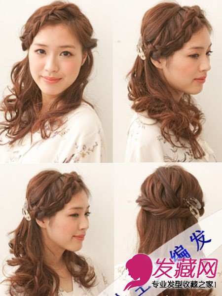 公主头编发: 额头上斜编织的麻花辫,背后缠绕的简单的扎发,让这款公主头编发看起来非常地有气质与难以抵抗的魅力。