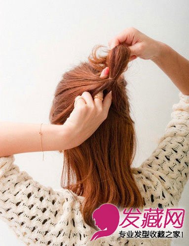 step4:用手从下方将发尾从发圈固定的地方穿过。