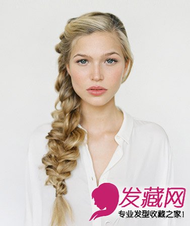 这款蜈蚣辫适合发量较多的MM,蓬松饱满的侧边蜈蚣辫尽显欧美复古气质。