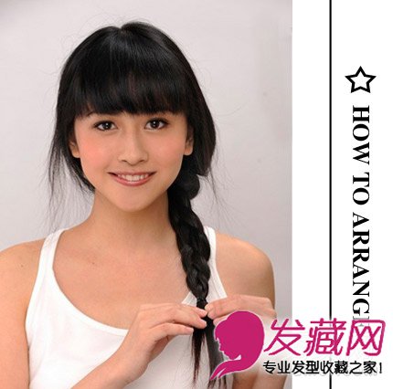 step2:将长发理到左侧,编织成一条宽松的三股辫。