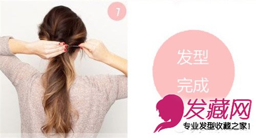 STEP 4 右边的头发按照以上的方法逆时针扭转2圈后用发夹固定好,最后固定好的发型如图所示。