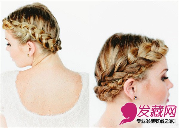 饱满的麻花辫形成一个别致的花环,丰满了头型,让你永驻经典。