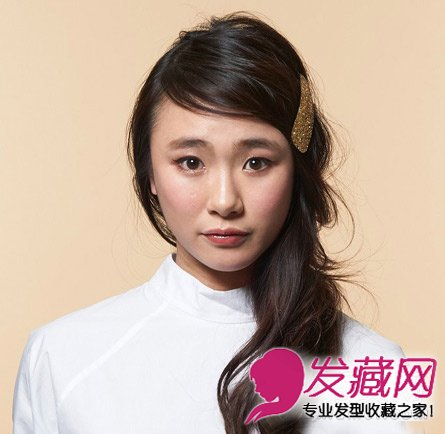 长发温婉而服帖的自左肩垂落,斜刘海勾勒出唯美的轮廓感,金色发夹点缀,演绎低调中的奢华。