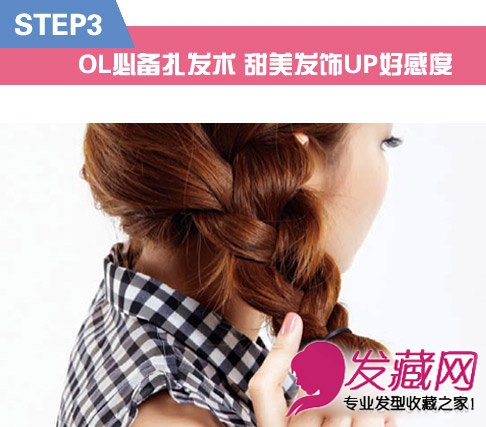 step3:再将脑后的头发编成侧边三股辫。
