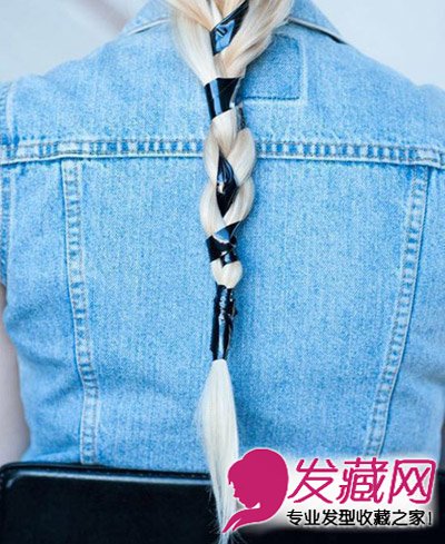 这款发型运用了法式麻花辫的编织手法以及特殊材质的发带,是不是非常的酷炫呢?扎上这样的发型,再搭配上黑色皮质的服装,让你瞬间变身潮人!