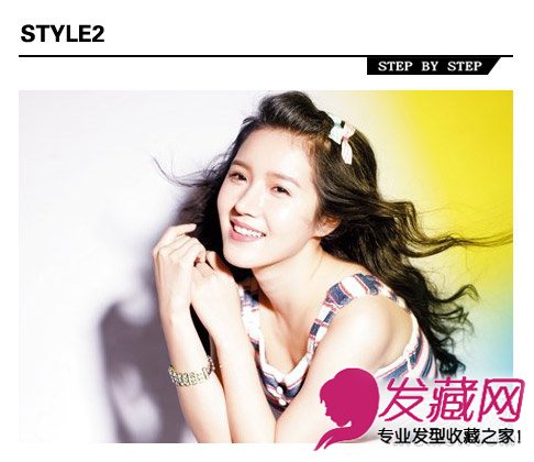 披肩卷发华丽浪漫,刘海扎成的发包搭配蝴蝶结造型甜美感十足。
