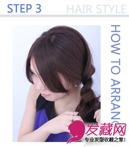 STEP 3:将头发固定在一侧边开始编织麻花辫。