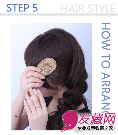 STEP 5:最后在侧扎麻花辫的那侧夹上发夹就完成了。