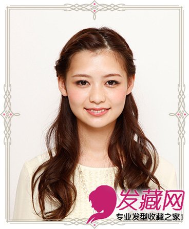 第二款:刘海编发清新唯美。长卷发扎出公主头后披散在肩头,女人味十足。