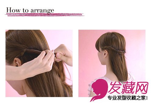 step1:取出耳朵附近的头发扭转成发辫后固定在脑后。
