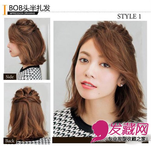 Style 1:BOB头半扎发