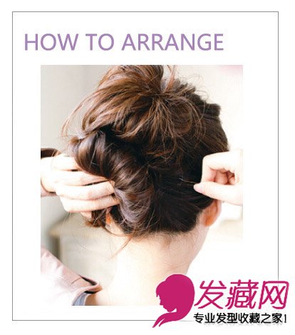 step 2:剩余头发扭转成侧花苞,同样用黑色发卡固定。