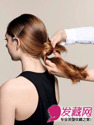 第三步:将两边头发打结,如同绑鞋带,重复两次。