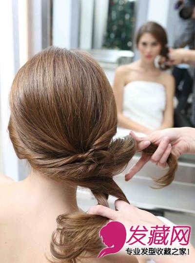 3、将分好的2-3股头发进行旋转式的编发,图中示范的是3股,你也可以尝试做2股的麻花辫。