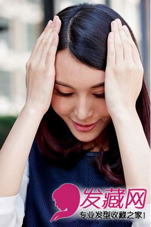 以2:8的比例,将前发用发缝分开,一直延伸到后脑勺