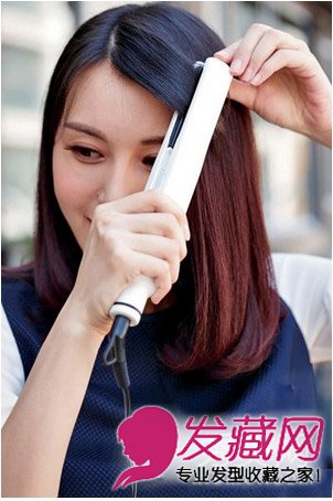 最后将刘海用卷发棒以前低后高的方式卷出弧度。