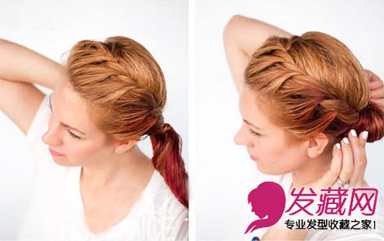 把编好的头发扎好,然后在后面盘一个发髻,固定好就完成啦。