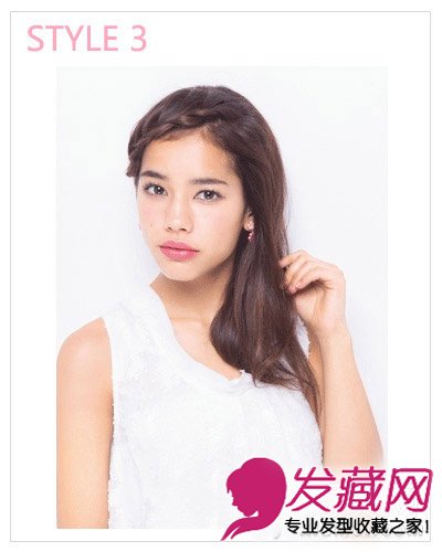 侧分刘海编发造型掩盖原来的发线,营造出不对称美感。