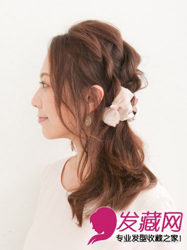 侧面效果:头顶的头发扭转成别致的发辫,看起来百变时尚。