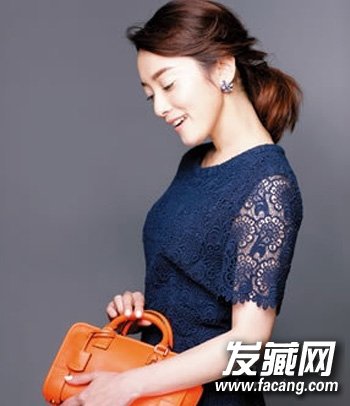 蓬松的马尾饱满大气,棕色头发散发出浪漫的光泽感,飘逸的刘海修颜显气质。