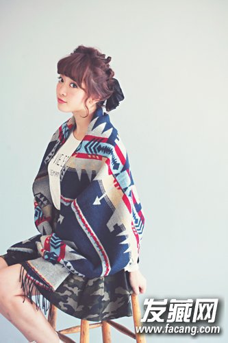 向上拧起的发型收敛全身。拧发卷发的组合技巧虽然简单却显得很下功夫。