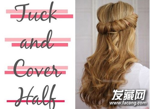 这款发型只要戴上漂亮的发带,然后像图上一样将头发一撮一撮地缠绕在发带上,看起来减龄又甜美的髮型就完成了!会比较适合长卷发的女生。