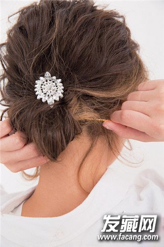 扎起来的发束部分往里面卷成丸子形状,用发卡夹3~4个地方固定。
