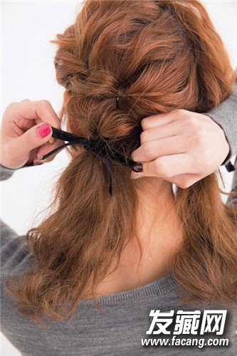 在发圈上扎一个蝴蝶结。深色调的细蝴蝶结搭配度最赞。