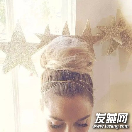 蓬松盘发发型,微卷发弄成高耸的盘发很显高贵气质,再加上简单的发箍修饰,瞬间美如新娘。