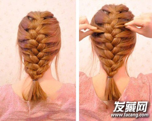 将头发一直编到发尾处,用小皮筋固定好发尾;