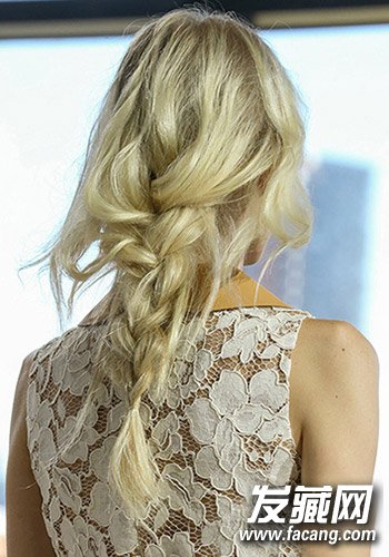 背后如果是打造成三股辨的形式,不仅可以让松垮感更自然强烈,同时也更增添一份甜美俏皮。从编发中轻扯出那些略短的小卷发,营造出明显的凌乱感才是造型的关键。