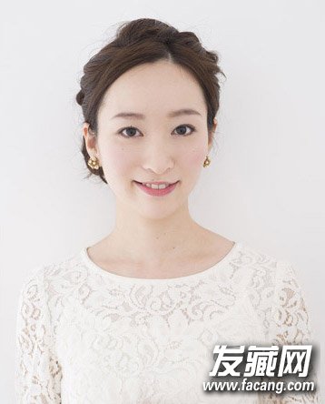 前额的刘海沿着脸蛋服帖的固定着,盘发清爽而优雅,搭配绚丽的耳饰,演绎出低调中的奢华感