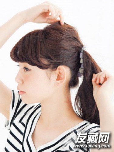 step2:用发夹固定后将头顶的头发抓拉出蓬松感即可。