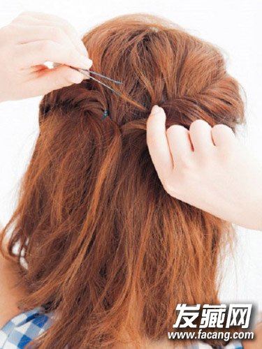 step2:再将刘海分别扭转成发辫后用发夹固定情况就可以了。