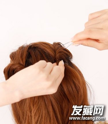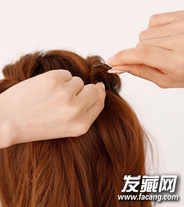 step2:将头顶的头发扭转成发辫后用发夹固定。