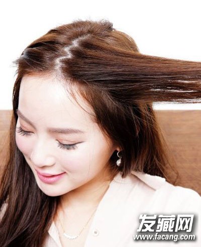 step1:按照Z字形将刘海分开后取出左侧的头发。