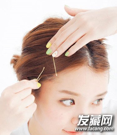 step2:将中分刘海用细发夹固定,稍作调整即可。