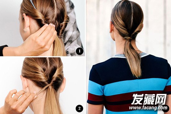 这样打造:将头发分成两边,运用尖头梳将头发向内卷入,将两边的头发绑紧,再利用一小撮的头发绕住马尾,完成后的发型,不仅让你活动时不受发丝的干扰,相较于一般的马尾又显得更有质感。更重要的是,当你走出健身房,你可以换上衣服,以这个俐落的发型去上班。