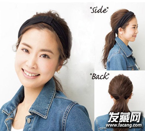 这款露额的长发扎发非常适合这个大夏天,蓬松的头发扎成一个低马尾,用头巾辅助固定顶部的头发,简约但是不单调。添上一个特别的发饰能为发型增添色彩。