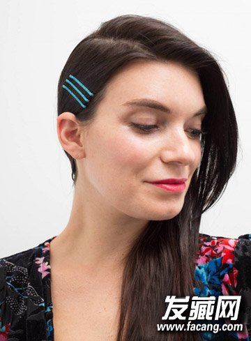 选用带有金属色泽的发夹将侧边的鬓发收起,也是一种不同的美感。