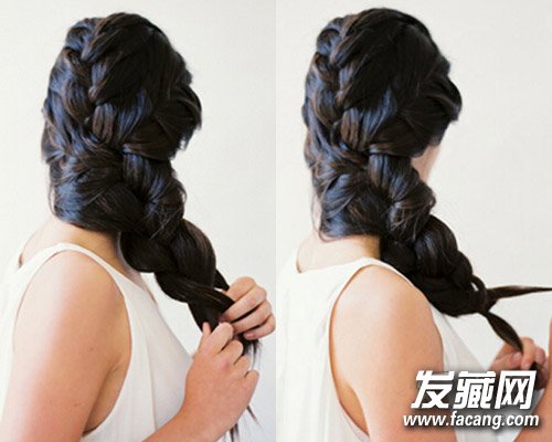 7、再将麻花辫拉扯出蓬松感即可。