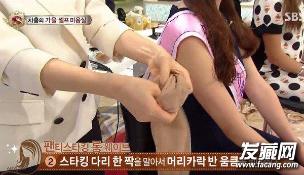 拿出丝袜,把袜子卷起来,就像我们平时要穿时那样卷: