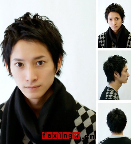 超有型的帅气男生短发,线条感的微卷头发用发蜡直接抓出效果,露出额头的发型设计,展现出精神奕奕的清爽面貌,稍有的层次感,造型更时尚帅气,黑色的围脖,呈现出优雅的绅士气质,温婉迷人。
