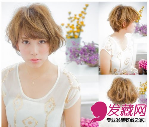 短发荷叶头搭配稍长的脸型最好看,不对称的设计更是有特色,使发型更灵动有设计感。金棕色的染发很有欧美范,稍凌乱的卷烫自然也随意打造出时尚感。