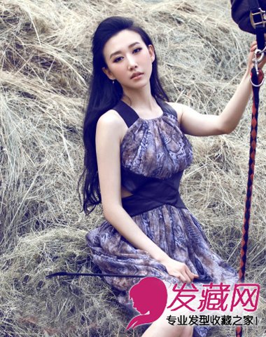 长瓜子脸型,看上去充满古典美,光洁的露额走形,简约的束发,飘逸优雅,裙装更显气质美