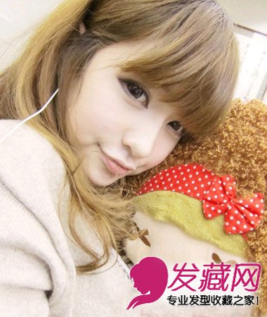 小清新范儿齐刘海发型,蓬松齐刘海瞬间将宽脑门包住,修饰出精致的小V脸,自然的微卷发丝清新甜美显知性气质。